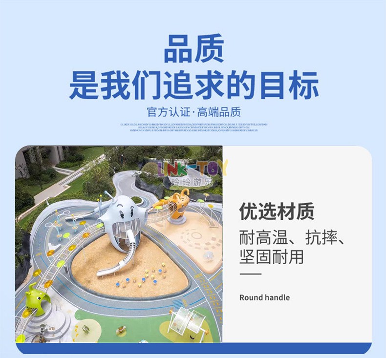 戶外大型不銹鋼滑梯組合,也能夠是小型室外不銹鋼滑梯。不可承認大型不銹鋼滑梯具有功用多,玩耍性極強特性。不銹鋼滑梯零部件眾多,能讓孩子們鉆、爬、滑都充沛得到鍛煉。常有的組合有:門、過橋、滑筒、頂子、爬梯、扶手、臺板、立柱、不銹鋼滑梯、攀爬管、和繩網等。而小型室外不銹鋼滑梯則相反,功用有限,能讓孩子體驗的項目也少。大型不銹鋼滑梯的隨意組合空間十分大,一定是孩子們熱衷的。